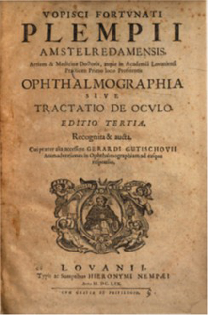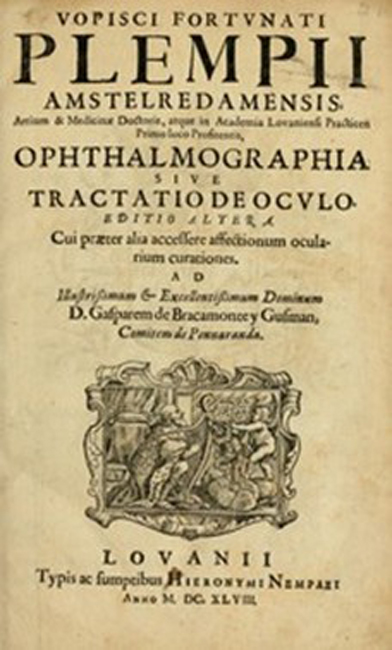 Plempius verbetert de dwalingen van Galenus en past de optische principes van Kepler toe, gepubliceerd in 1604. Dit traktaat is verdeeld in vijf delen.