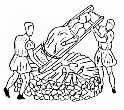 [2] Bron in het Publieke Domein van een Attische Amphora (uit circa 470-460 v.o.j.) met een afbeelding van Theseus legt Procrustes op zijn eigen bed – Collection Staatliche Antikensammlungen